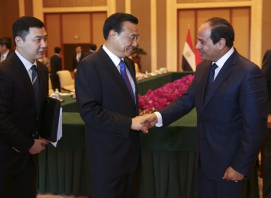 李克強(qiáng)總理會(huì)見(jiàn)埃及總統(tǒng)塞西,就對(duì)方希望"加強(qiáng)反恐合作"提議表示:"我們既要加強(qiáng)反恐合作,也要妥善解決熱點(diǎn)問(wèn)題,更要高度重視發(fā)展經(jīng)濟(jì),以鏟除恐怖主義傳播的土壤。"